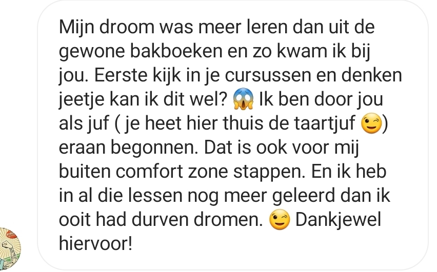 Als jij een probleem hebt terwijl je bezig bent met de cursus en dat probleem moet onmiddellijk opgelost worden of je bereiding zou mislukken, dan kan je me een video/foto sturen met de uitleg wat je aan het doen bent voor welke bereiding uit welke cursus, en ik zal in staat zijn om je onmiddellijk te helpen vanop afstand.