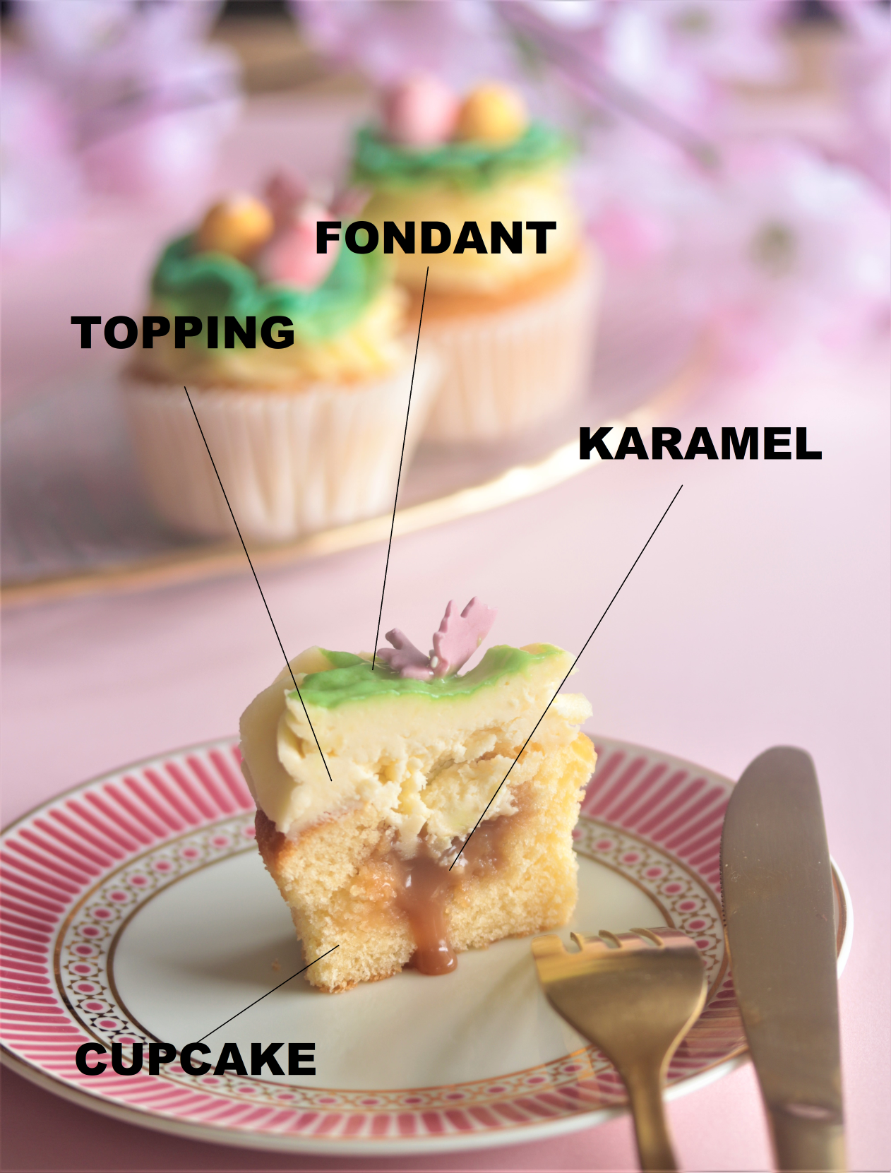 Deze heerlijke zachte cupcakes zijn gevuld met karamel en afgewerkt met topping.