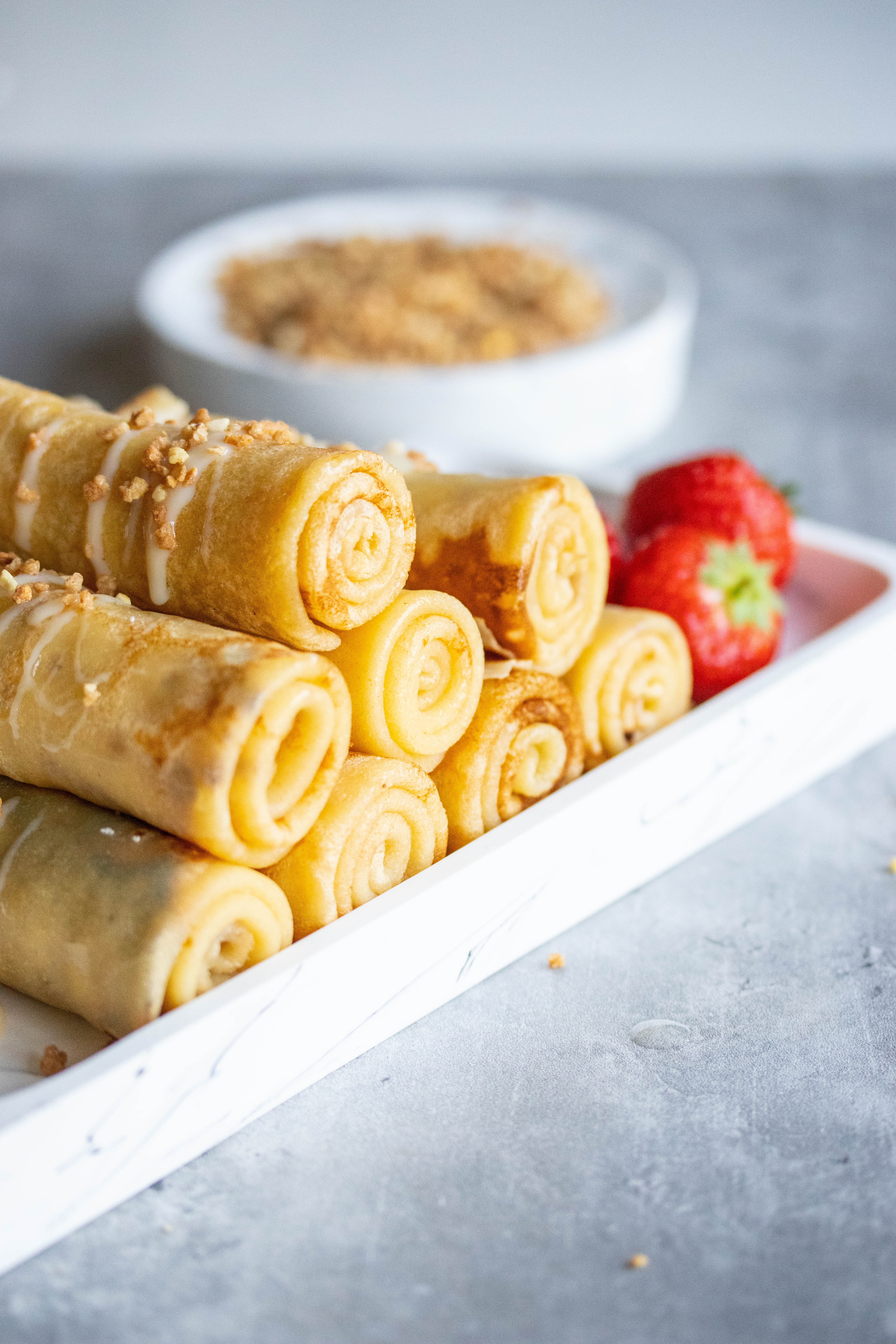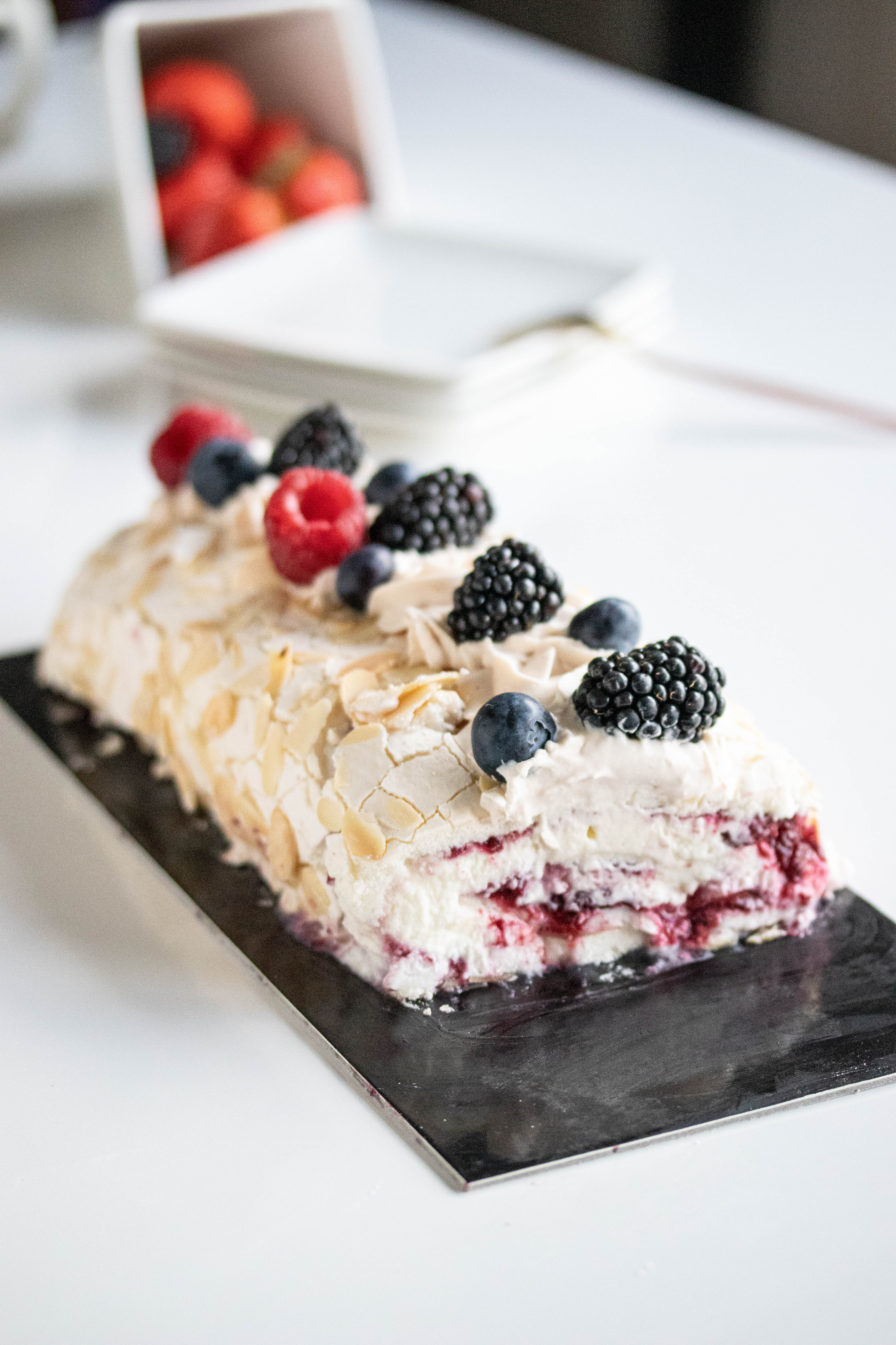 Dit Millefeuille brood bestaaf uit verschillende laagjes flinterdun deeg. En je kan zelfs nog tussen de laagjes vulling plaatsen! Milleufeuille letterlijk vertaald uit het Frans is 'Duizend blaadjes'. En doordat dit broodje uit zoveel verschillende laagjes bestaat, doet het denken aan millefeuille.