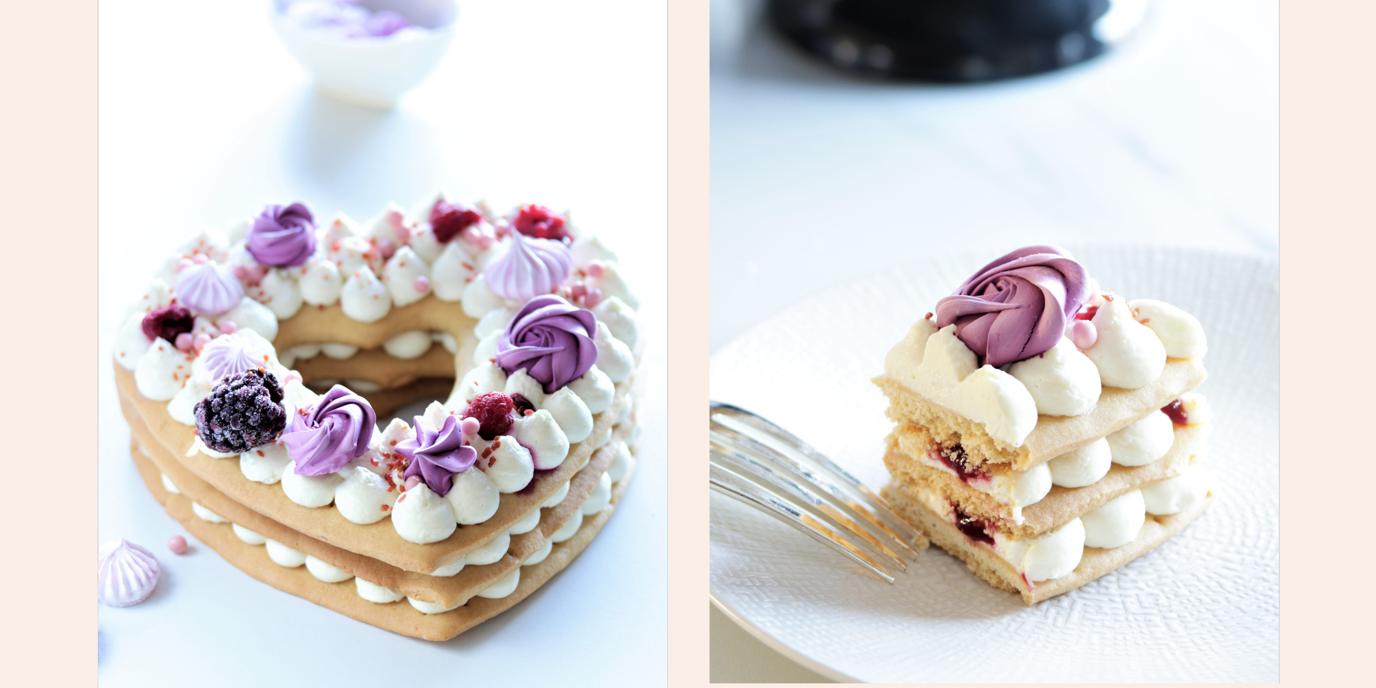 De taart bestaat uit honingkoeken die zeer zacht worden na enkele uren, waardoor je een soort honingbiscuit krijgt. Binnenin is de taart gevuld met een confit van frambozen die voor een licht zuur accentje zorgt. De smaak zal je niet onverschillig laten.