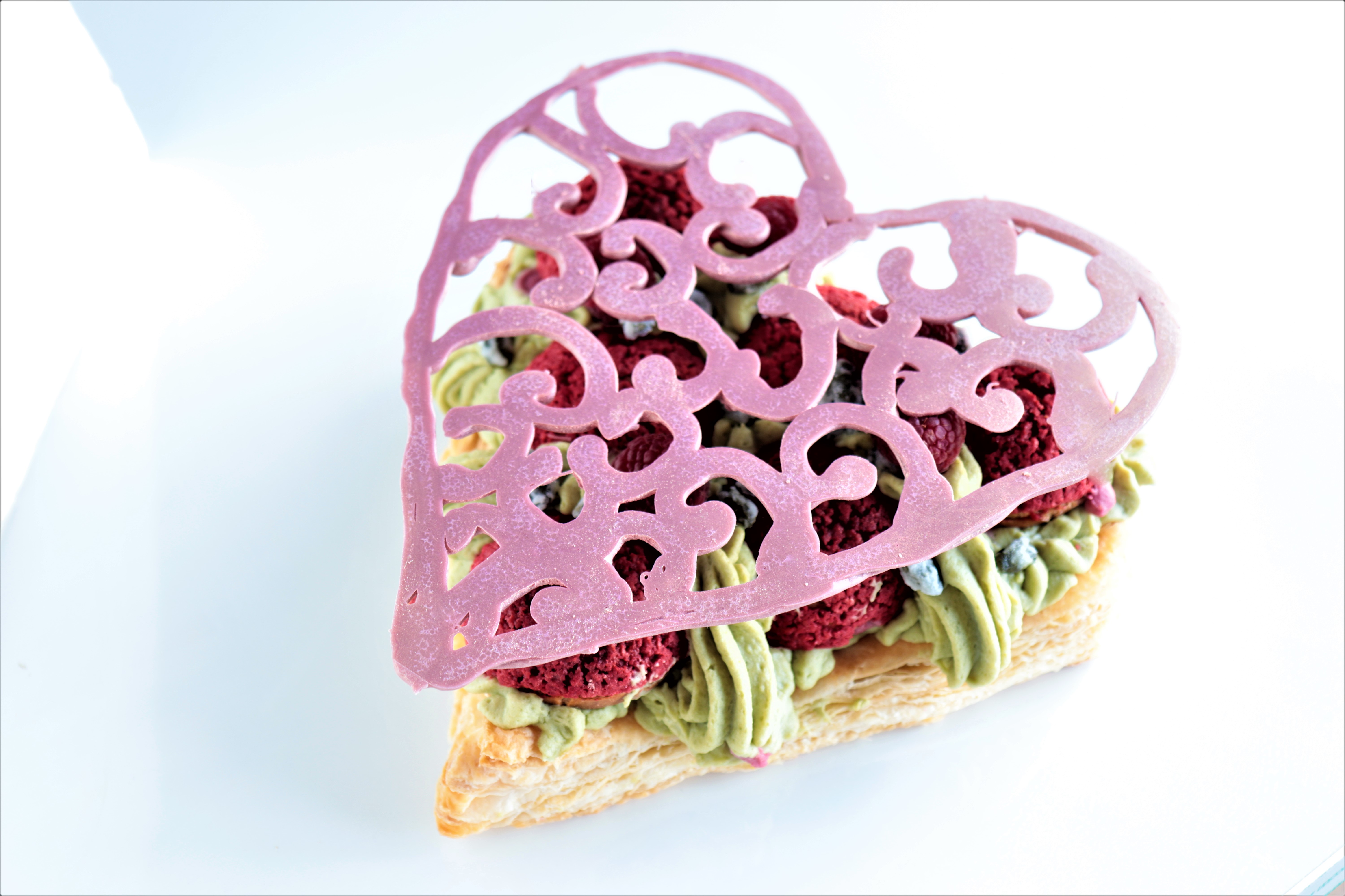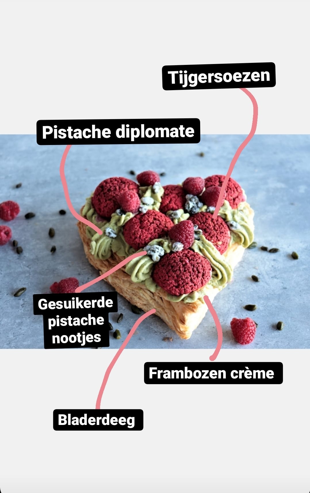 Een superlekkere variatie op Saint-Honoré. De klassieke versie is met slagroom, wij maken onze versie met pistache diplomate.