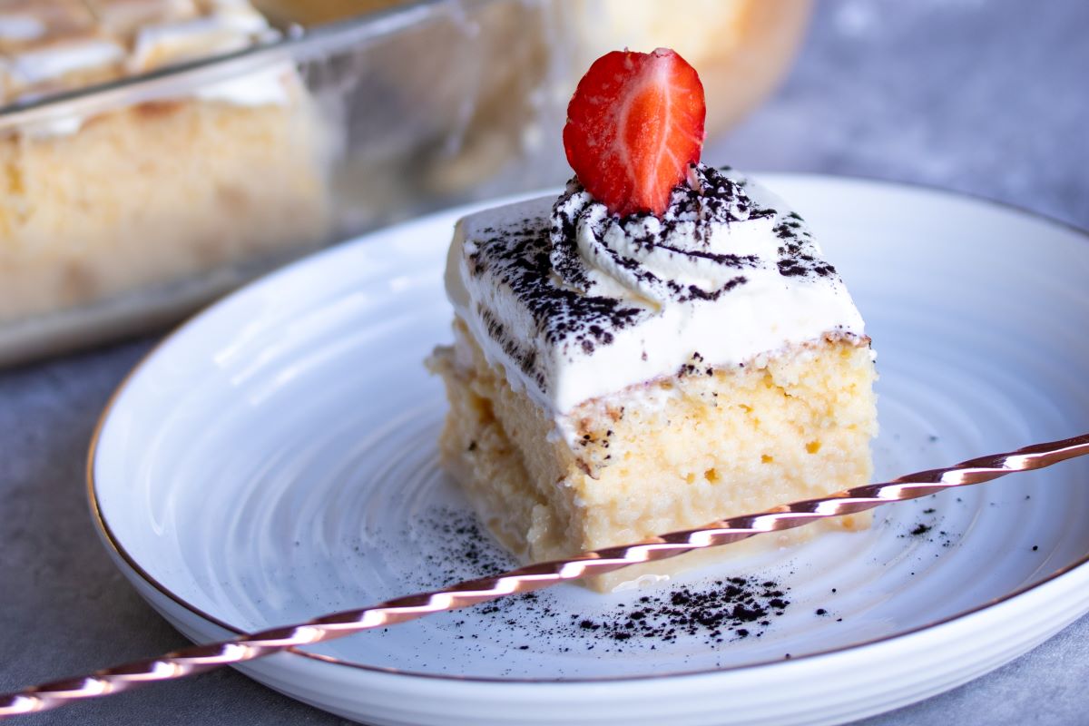 Tres leches is eigenlijk iets tussen een taart en een cake. Het is een soort biscuit die wij dan tremperen met heel veel siroop die gemaakt is van drie soorten melk vandaar de naam “tres leches”. Deze lekkernij komt uit Nicaragua, maar kan je terugvinden over heel Zuid-Amerika.
